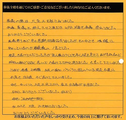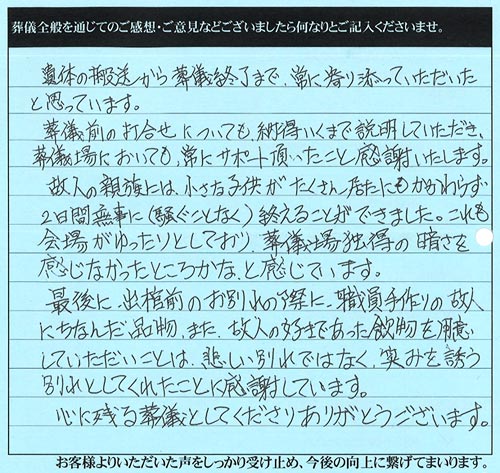 ºÇ¸å¤Ë¡¢½Ð´½Á°¤Î¤ªÊ̤ì¤ÎºÝ¤Ë¡¢¿¦°÷¼êºî¤ê¤Î¸Î¿Í¤Ë¤Á¤Ê¤ó¤ÀÉÊʪ¡¢¤Þ¤¿¡¢¸Î¿Í¤Î¹¥¤¤Ç¤¢¤Ã¤¿°ûʪ¤òÍѰդ·¤ÆÄº¤¤¤¿¤³¤È¤Ï¡¢Èᤷ¤¤Ê̤ì¤Ç¤Ï¤Ê¤¯¡¢¾Ð¤ß¤òͶ¤¦Ê̤ì¤È¤·¤Æ¤¯¤ì¤¿¤³¤È¤Ë´¶¼Õ¤·¤Æ¤¤¤Þ¤¹¡£